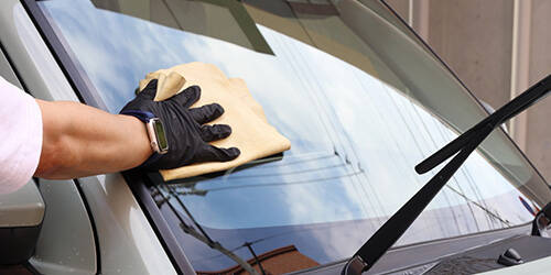 ホコリやゴミ、水分があると仕上がりに影響するため、まずはガラス表面を乾拭きします。