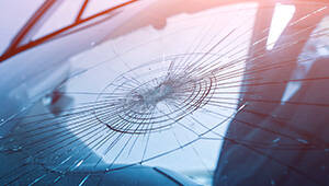 走行中、飛び石でガラスが割れたどんな小さなキズでも放置すると風圧、振動、温度差で傷が広がります。
